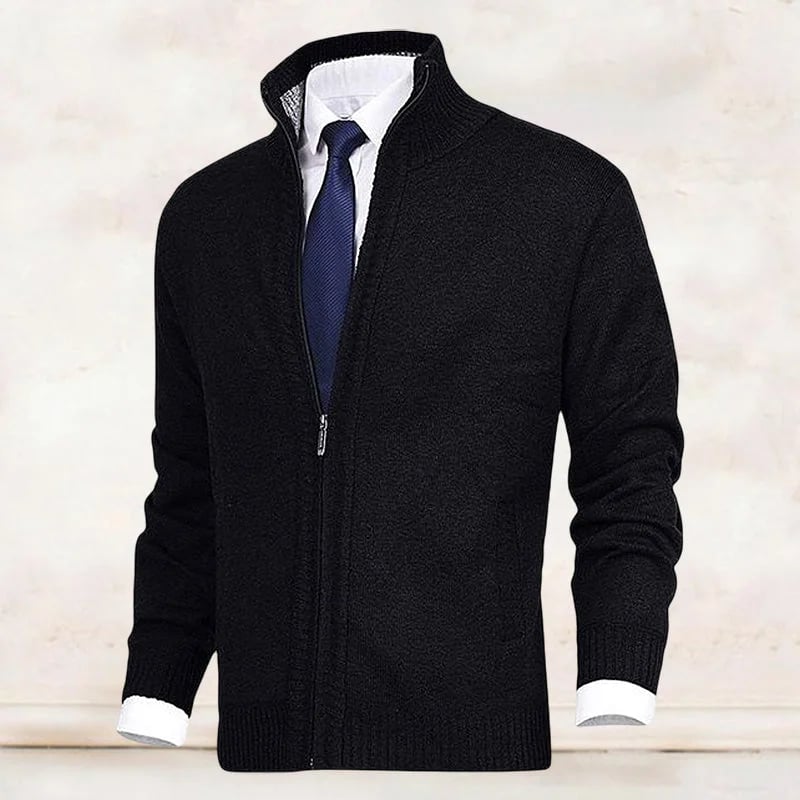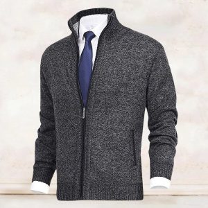 - 1* Men’s Fashion Solid Color Stand Collar Cardigan Sweater Knit Jacket